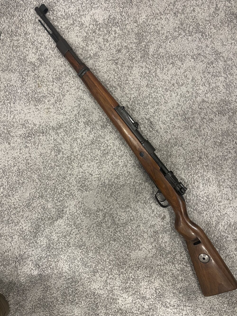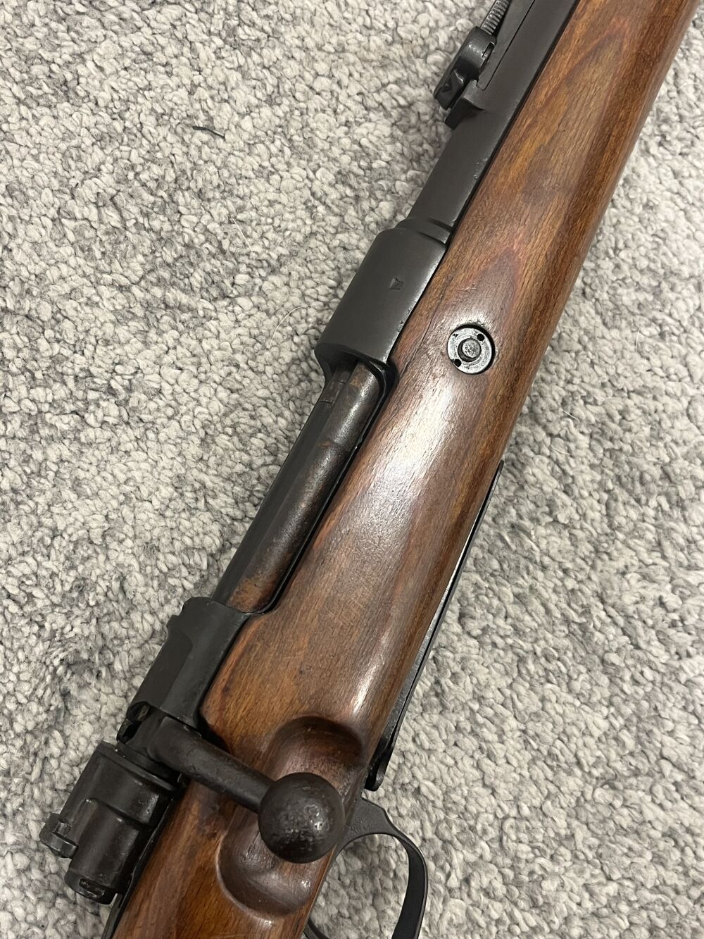 Augenscheinlich nummerngleicher Oberndorf Mauser byf , mit leicht überschliffenen Hülsenkopf , partiell leicht rostfarbig, wahrscheinlich nachbrüniert. daher Brünierung 95%. sauberes Schaftholz mit ... ...weiterlesen