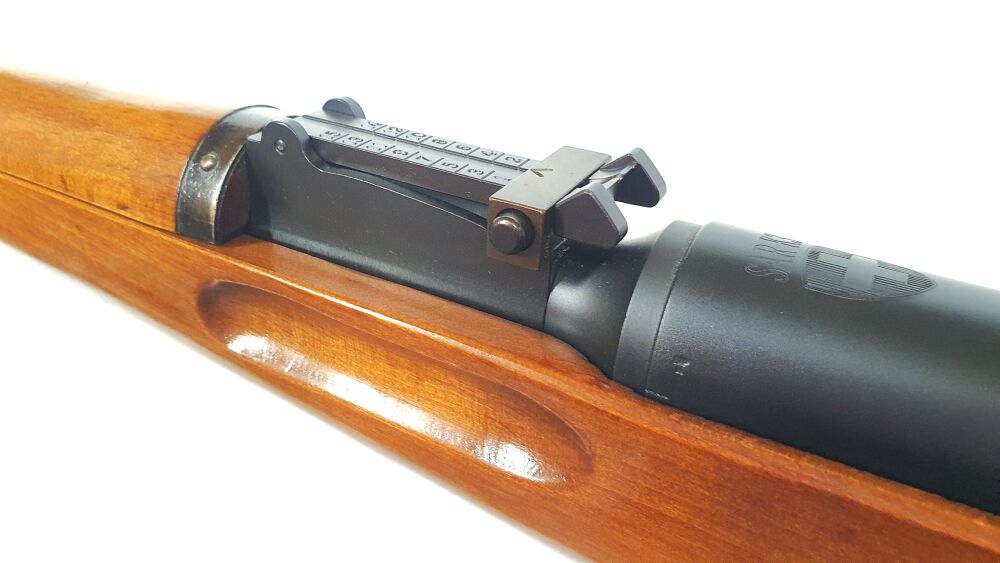 Bei diesem beliebten All-Time-Classic handelt es sich um neu hergestellte Karabiner K31 Gewehre, hergestellt aus ausgesuchten Waffenteile der Schweizer Firma Waffenfabrik Bern, wo den berühmten Karabiner K31 hergestellt hat.