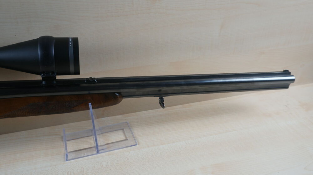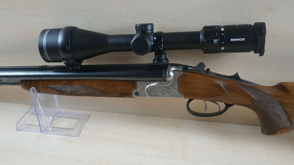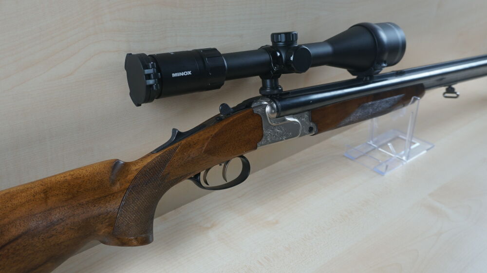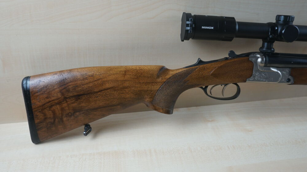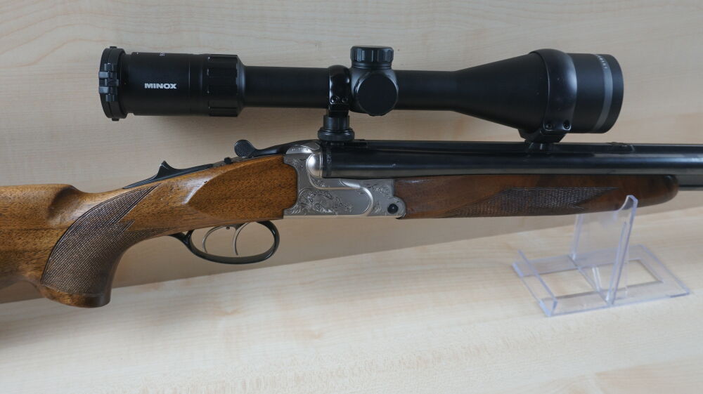Drilling Krieghoff, Modell Plus im Kaliber 7 x 65R und 20 / 76 mit Einstecklauf im Kaliber 22 Hornet, Handspannersystem mit Umschaltung, Schwenkmontage und Zielfernrohr Minox 3 - 15 x 56 Leuchtabsehen 4.