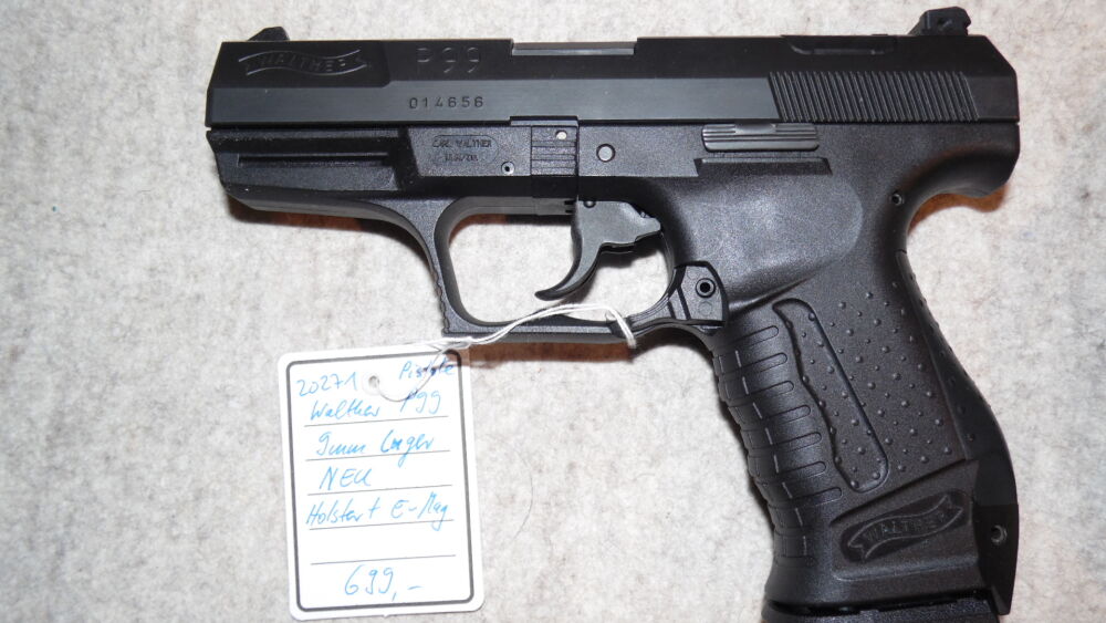 Neuwertige Walther, P 99, incl E-Mag und Holster, sehr wenign bis gar nic geschossen, 9mm Ler, Sicherheitshinweis: Carl Walther GmbH UIm Im Lehrer Feld 1 89081 Ulm Tel: 0731 / 15 39 0 info@carl-walther.de www.carl-walther.de