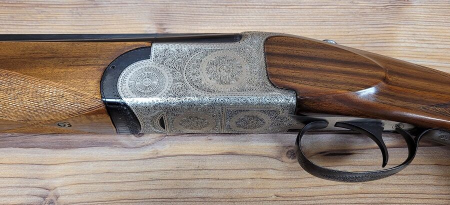 Bockflinte Gamba Gardone Kaliber 12/70 Lauflänge 76 cm Vollchoke // Halbchoke Einabzug & Ejektor Sicherung am Kolbenhals Schaftlänge ca. 36,5 - 37 cm Breite Laufschiene Sporti... ...weiterlesen
