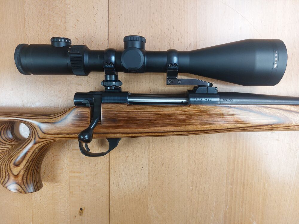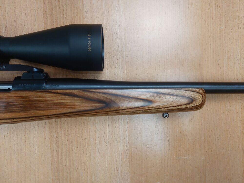 Repetierbüchse Howa M 1500 Kaliber 30-06 Springfield Lauflänge 560mm Beschuss 2009 Lochschaft Schaftlänge 360mm ( Abzug - Mitte Schaftkappe) Gesamtlänge 1090 mm Flintenabzug Schwenkmont... ...weiterlesen
