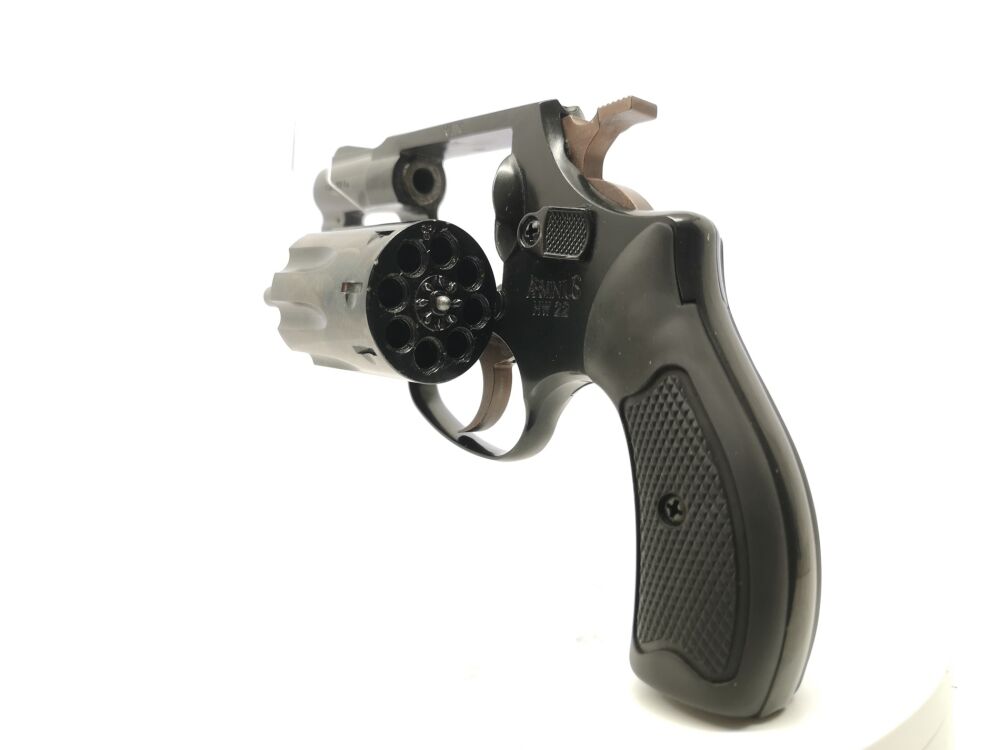 Besonderheit: fast neuwertiger kleiner Revolver für die Fallenjagd etc., kurzer 45mm Lauf, extrem führig, Weihrauch HW22, im orig. Karton, aus 2024, durch Vorgänger kaum genutzt, beidhändig nutzbar, Visierung über Rahmenkimme und Korn, 8-Schuss Trommel *** voreintragspflichtig ***