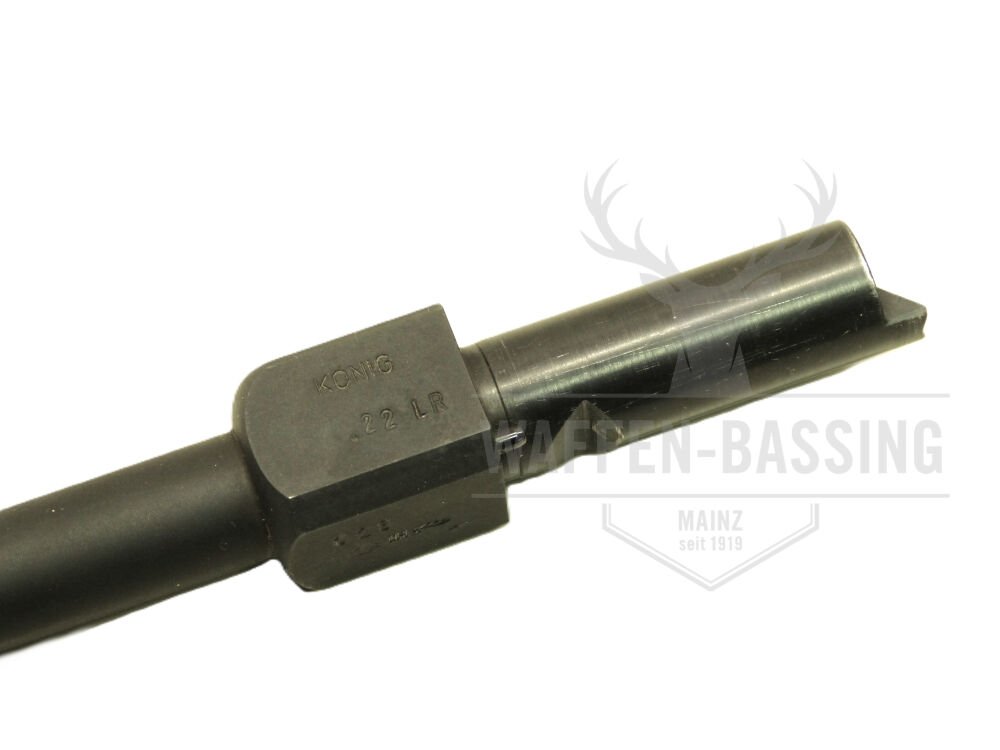 Dieser sehr gut erhaltene Wechsellauf für die halbautomatische Pistole Walther GSP in Kaliber .22lr hat eine Lauflänge von 27,0cm. Die original Brünierung befindet sich in einem sehr guten Zustand, ebenso wie die Züge und Felder des Laufs. Der Wechsellauf verfügt über ein austauschbares Korn, sodass im fertig verbauten Zustand mit der standardmäßig verbauten offenen Visierung der Walther GSP, geschossen werden kann.