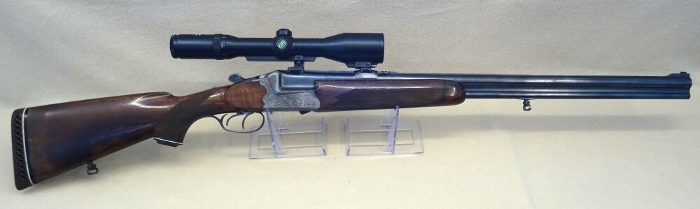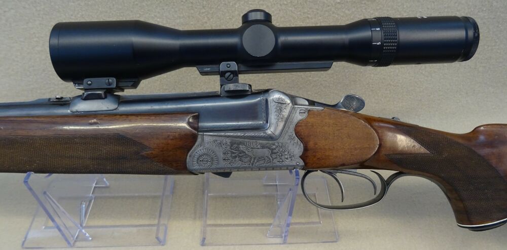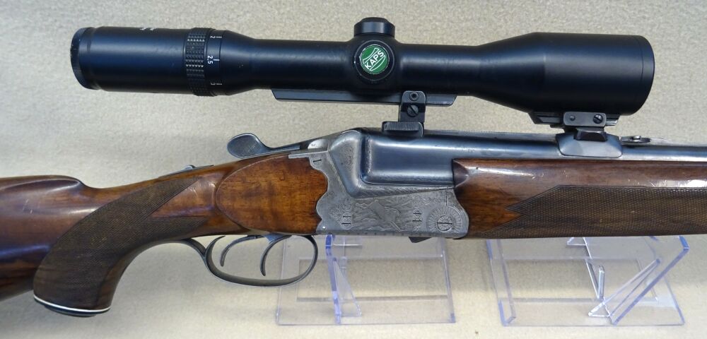 Wir bieten Ihnen eine gebraucht Waffe Die Bockbüchsflinte des Hersteller Kettner Mod. Sodia, im Kal.16/70 u. 7 x 65 R ist in einem Holzschaft mit deutscher Backe gearbeitet. Auf der Waffe ist ein ... ...weiterlesen