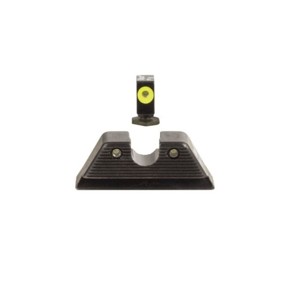 Pistole Glock Standard Frame/Griffstück Modell 17MOS, 19MOS, 34MOS und/oder 17, 17L, 19, 22, 23, 24, 25, 26, 27, 28, 31, 32, 33, 34, 35, 37, 38, 39, HD XR Hard Duty Nacht Visierset grün mit Visierkorn grün selbstleuchtend, Visierkorn ist schmäller und mit Dot gelb umrandet Daylight, Visierblatt geriffelt mit breitem U-Shaped Notch schwarz, Code GL614-C-601091 Trijicon USA. Nacharbeiten sind eventuell erforderlich - eine fachgerechte Montage wird empfohlen!
