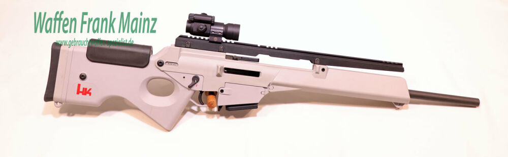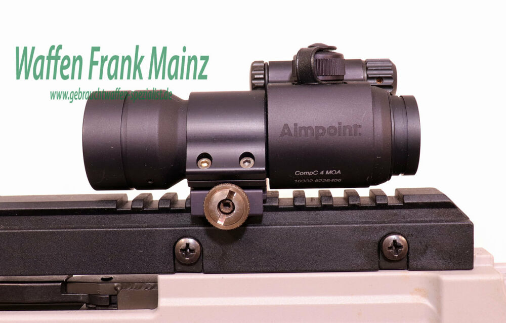 selten geschoosen, aus Sammlungsauflösung, absolute Funktionssicherheit und perfekte Schussleistung durch kalt gehämmerten und hartverchromten 20mm Matchlauf, einfache Handhabung und Bedienteile für Links- und Rechtsschützen, schneller Magazinwechsel durch automatischen Verschlussfang bei leer geschossenem Magazin, ziviler, grauer, ergonomischer, neutraler Kunststofflochschaft für Links- und Rechtsschützen, mit verstellbarer Hinterschaft in Höhe und Länge, montiertes Aimpoint Leuchtpunktvisier Typ CompC 4 MOA, auf Picatinny Trägerschiene....