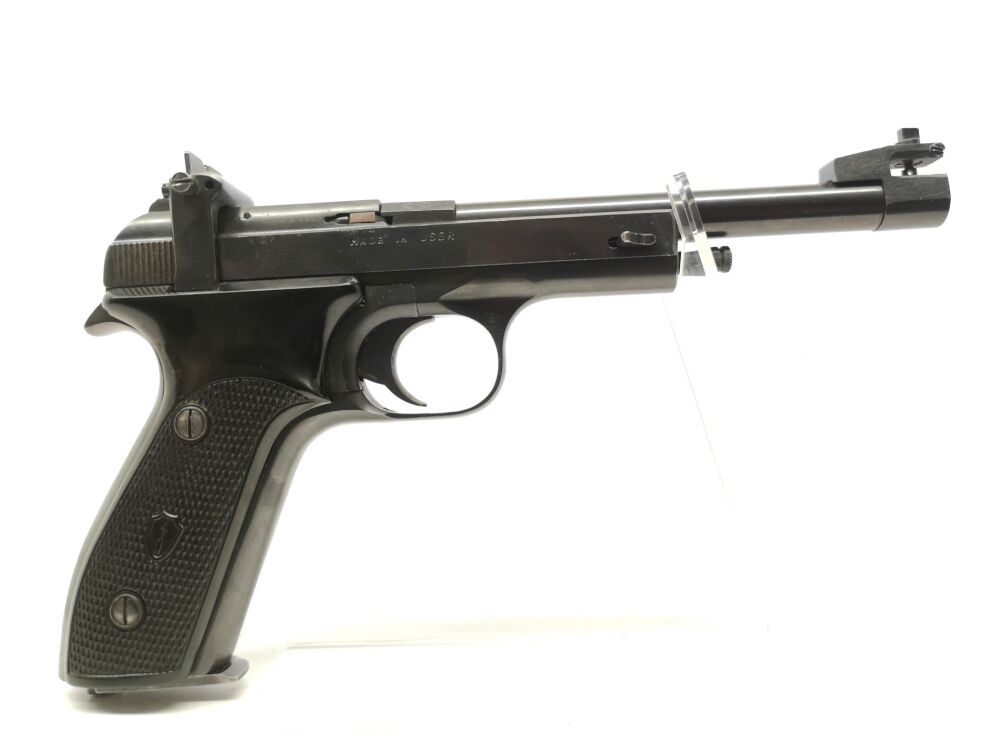 Besonderheit: ideale Einsteiger KK-Pistole, Margolin MZM, Made in Russia, Formgriff für Rechtshänder, verstellbares Korn und Kimme (Kornverstellung fehlt leider), Steckmagazin, 6" Lauf, optischer Zustand Note 2, technisch in Ordnung *** voreintragspflichtig ***