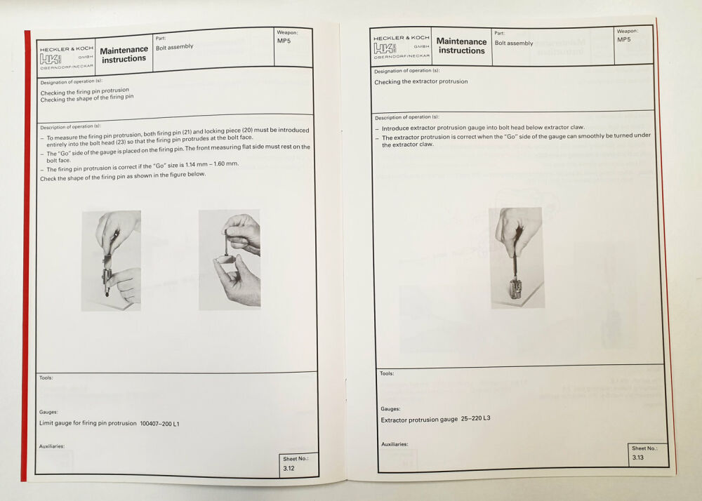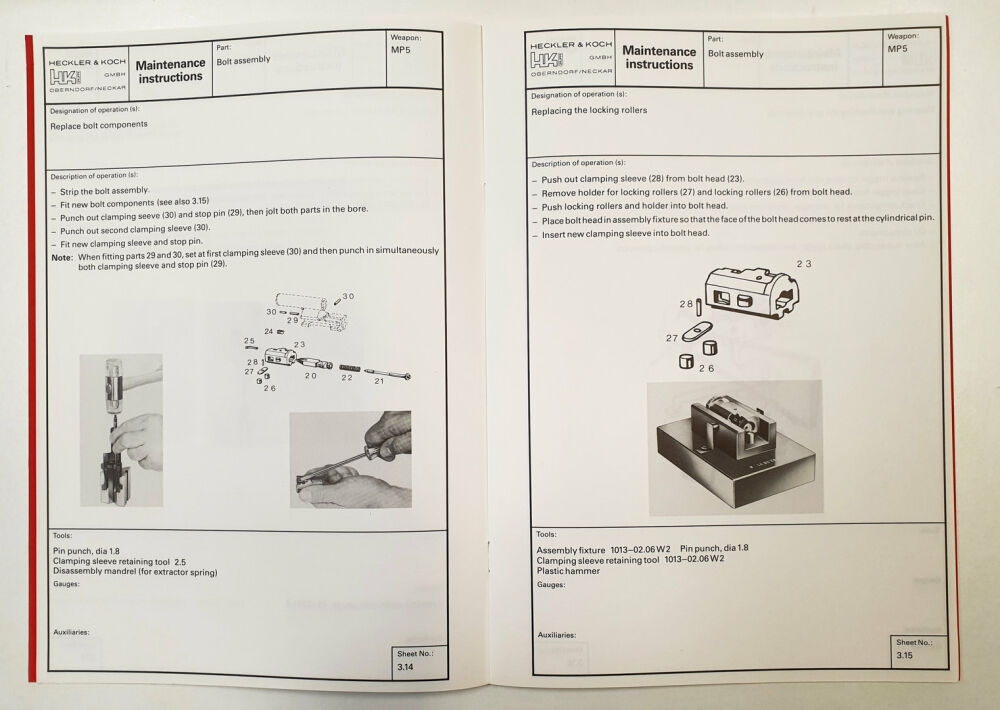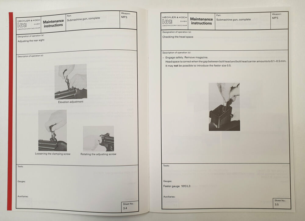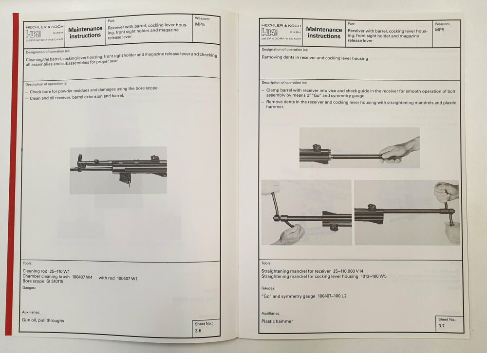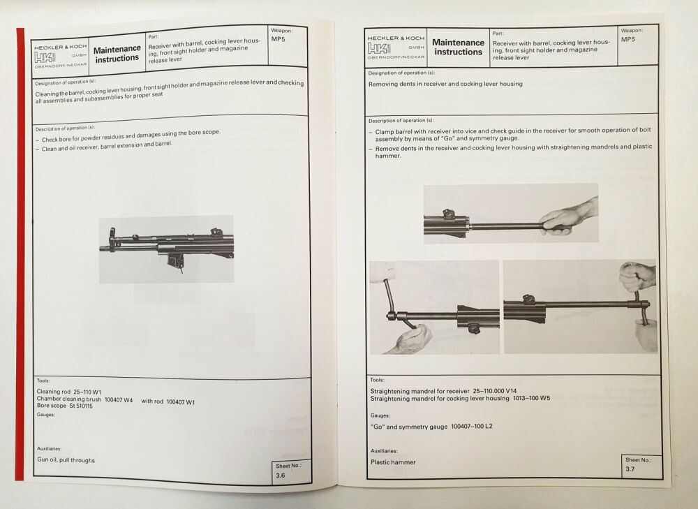 Original Heckler & Koch HK MP5 SUBMACHINE GUN INSTRUCTIONS FOR MAINTENANCE AND REPAIR