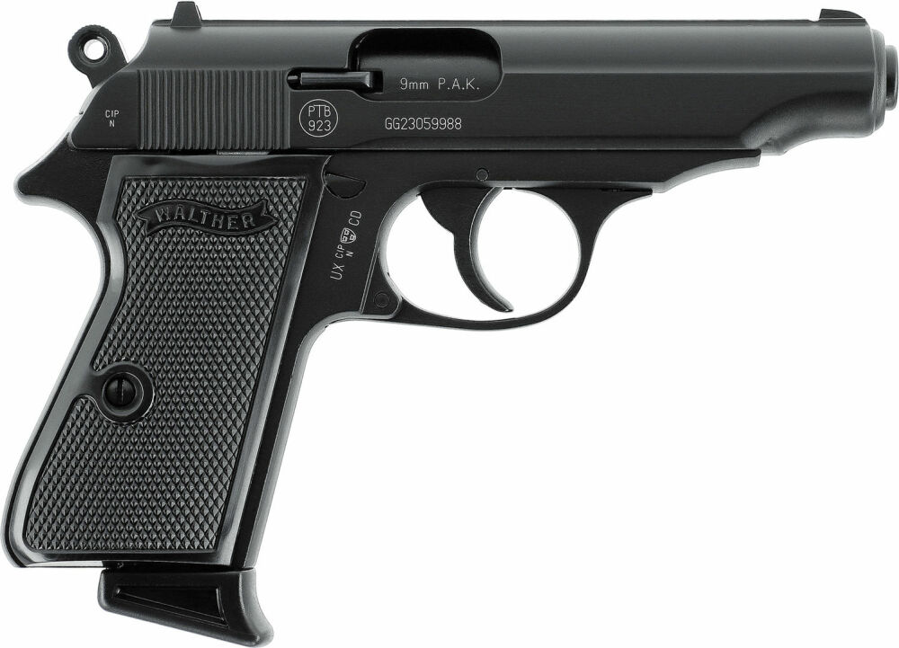 Auch als Schreckschusspistole im Kaliber 9 Millimeter P.A.K. ist die Walther PP begehrt. Echte Fans schätzen die detaillierte Beschriftung auf Schlitten und Griff sowie das einfache Handling. Die PP ist für die Reinigung schnell zerlegbar. Mit kompakten Abmessungen und flacher Bauweise eignet sich die PP außerdem gut für den Selbstschutz unterwegs. Sie ist nur knapp 600 Gramm schwer.