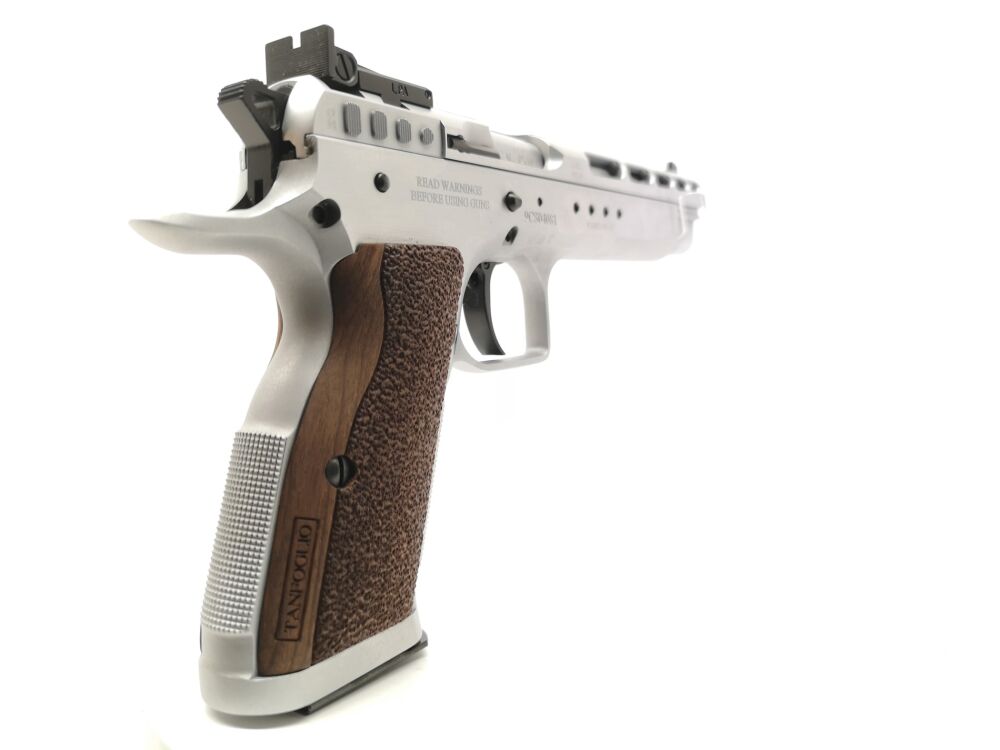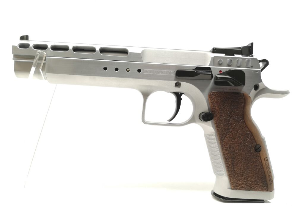 SHOP LINK N4025 Tanfoglio - P19 Gold Match BDS - Neuwertig- neuwertige Tanfoglio Gold Match BDS im Kal. 9mm Luger, 6" Lauf, bi-color, Holzgriffschalen, Sicherung Llinksseitig (für Rechtsschütz... ...weiterlesen