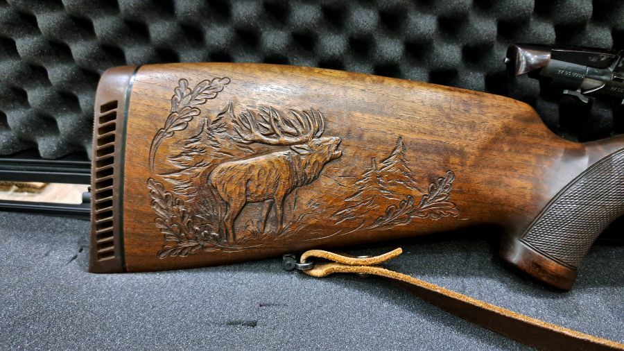 Hervorhebenswert sind die Schnitzereien am Hinterschaft, die die Waffe zum Unikat machen.