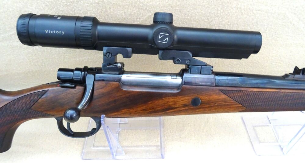 Wir bieten Ihnen eine gebraucht Waffe Der Repetierer des Hersteller Interarms, Mod. Whitworth im Kal. .458 Win Mag ist in einem Holzschaft mit deutscher Backe gearbeitet. Auf der Waffe ist ein ZF d... ...weiterlesen
