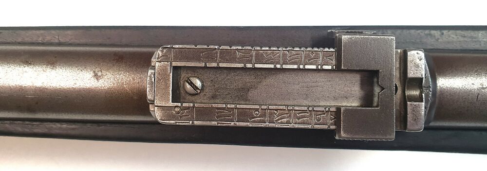 Auf der Kimme sieht man kyrillische bzw. altrussische Beschriftungen. Normalerweise enthält das Gewehr 88 deutsche/arabische Kennzeichnungen und nicht sowjetische. Dies ist jedoch möglich da während des ersten Weltkrieges viele Waffen in Umlauf gelangten. Länder wie das Osmanische Reich