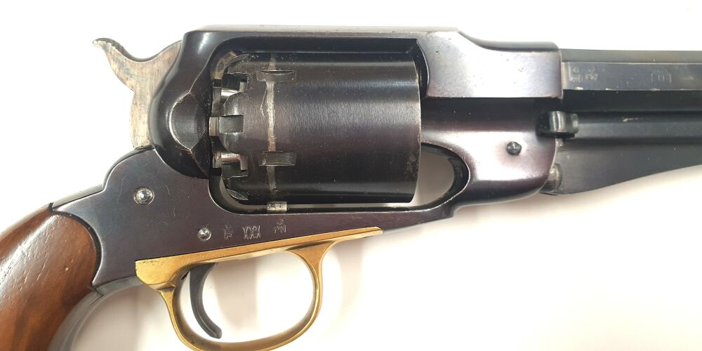 Der New Army 1858 Revolver im Kaliber .44 BlackPowder vom italienischen Hersteller Uberti ist eine Reproduktion des Remington US-Armeerevolvers von 1858.