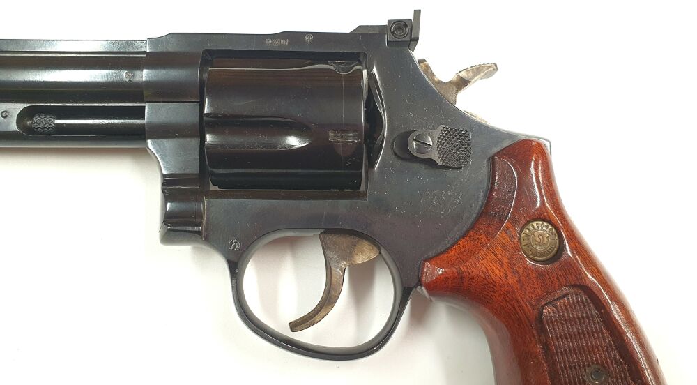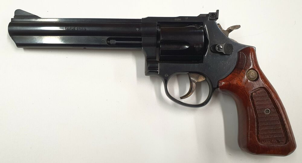 Der Revolver Taurus Modell 441 ist ein stabiler und verlässlicher Revolver und optimal für Sammler geeignet. Er kommt mit original Holzgriffschalen, Verpackung, Zertifikat und Zubehör.