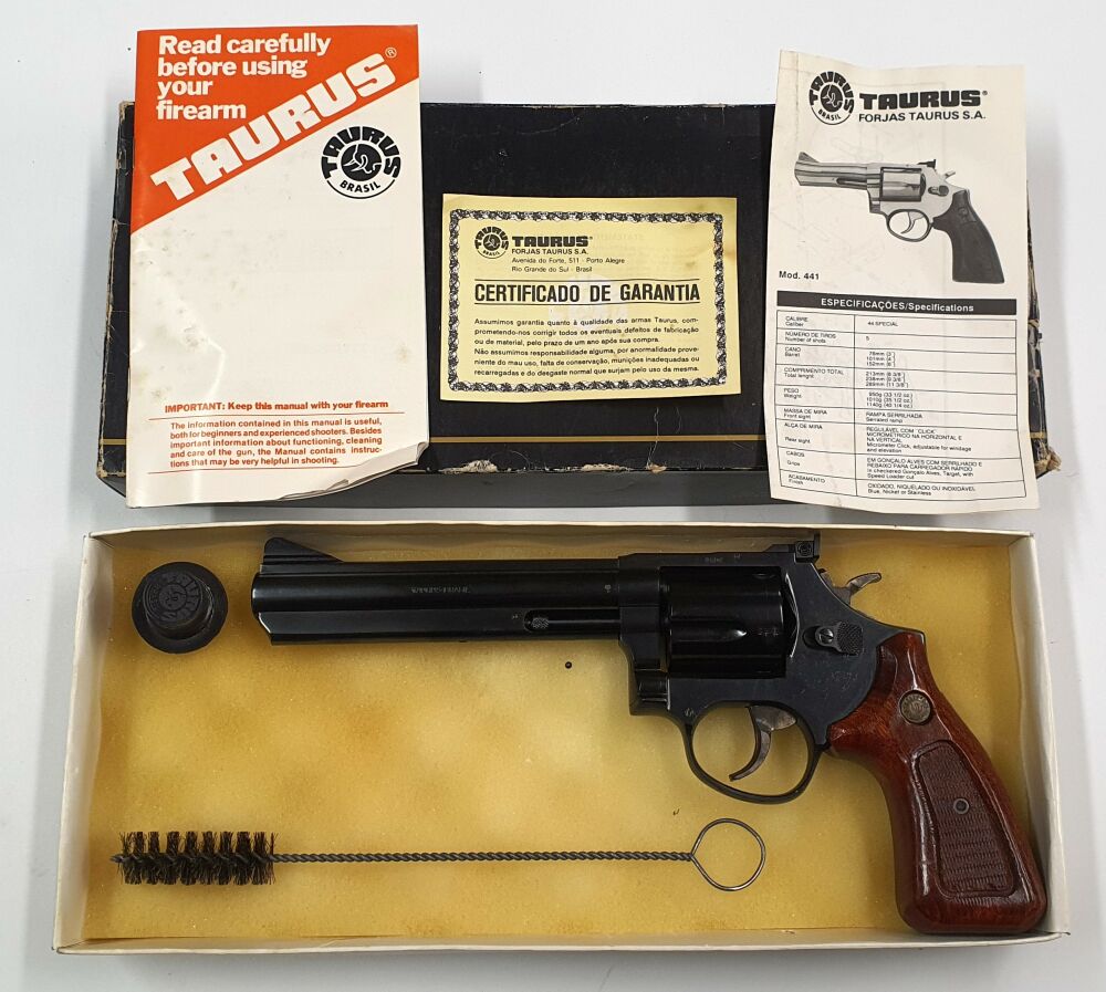 Gebrauchtware: Der Revolver Taurus Modell 441 ist ein stabiler und verlässlicher Revolver und optimal für Sammler geeignet. Er kommt mit original Holzgriffschalen, Verpackung, Zertifikat und Zubehör.... ...weiterlesen