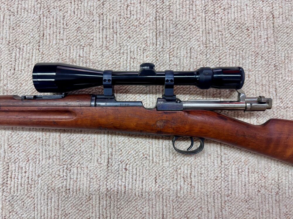 Es handelt sich um eine Mauser M 96 im Kaliber 6,5 × 55 SE. Ausstattung: Optik: Bushnell (2,5–10 × 45); Absehen 4 Zweiteilige zöllige Aufkippmontage von EAW  ...weiterlesen