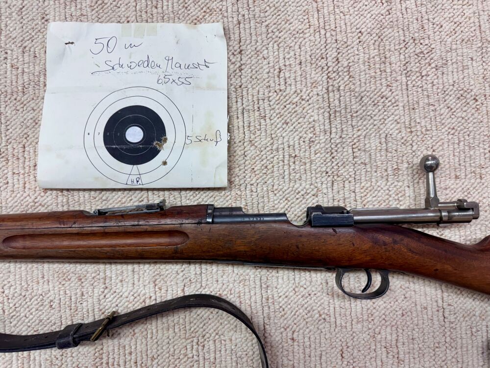 Es handelt sich um eine Mauser M 94 im Kaliber 6,5 × 55 SE.