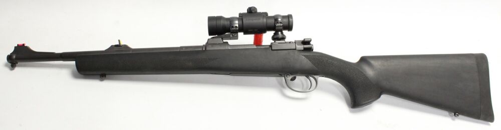 Mauser 98 Nachsuche Kaliber 8x57IS Lauflänge 40cm Cerakote Beschichtung Henneberger Flintenabzug griffiger Hogue Kunststoffschaft Riemenbügel an der Mündung verstellbare (Höhe &... ...weiterlesen
