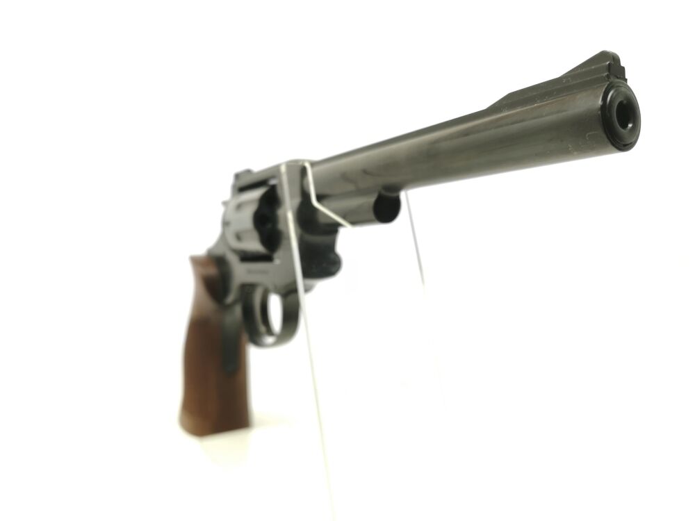 Besonderheit: preisgünstiger KK-Sportrevolver, Made in Germany by Weihrauch, Modell HW 7S, 6Zoll Lauf (150mm), 8Schuss-Trommel, SA/DA-Abzug ohne Vorweg, Holzgriffschalen f. Rechtshänder, verstellbare Kimme (nur seitlich), technisch in Ordnung, Allgemeinzustand Note 2,5 (daher Abwertung auf 3) *** voreintragspflichtig ***
