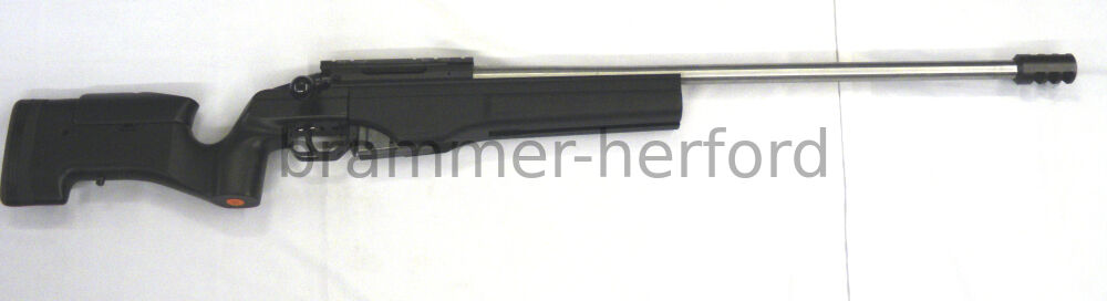 Es handelt sich um eine Gebrauchtwaffe. Details: - schwarzes System und schwarzer Schaft - silberner Lauf - Lauflänge 66 cm - Mündungsbremse und Montageschiene - leichte Spuren am Schaft vom Z... ...weiterlesen