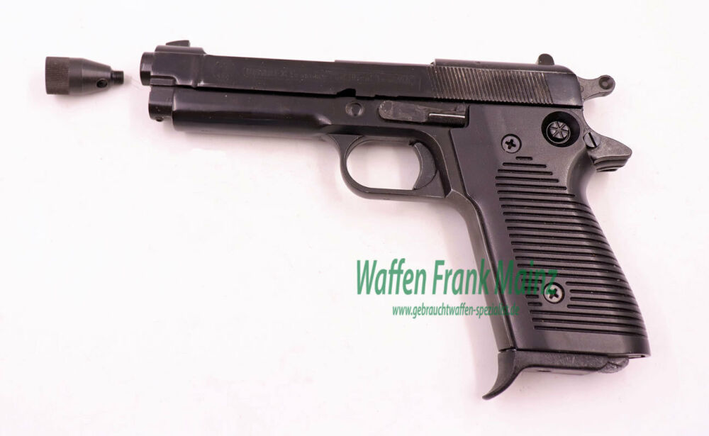 Baujahr: 1990, Zustand: 2-3, Lauflänge: 13cm, Gesamtlänge: 22cm, PTB 493,selten geschossen, aus Sammlungsauflösung, Nachbau der Militärpistole Beretta Mod. 951, mit herausnehmbarem 10+1 Schuss Magazin... ...weiterlesen