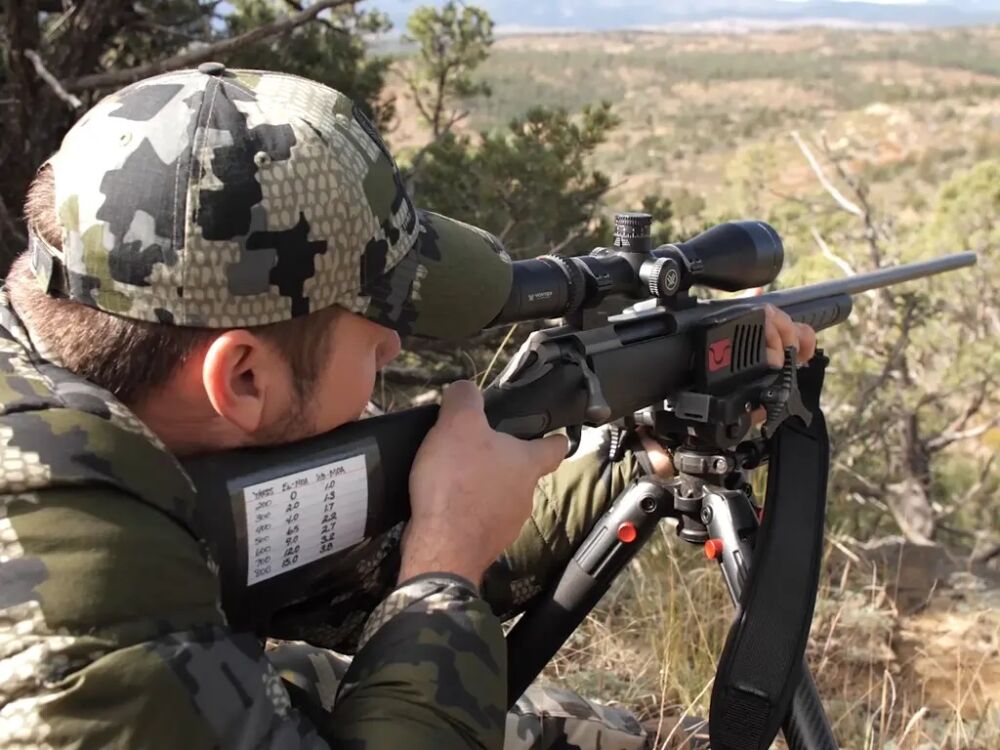 So könne sie bequem ihr Fernglas, Wärmebildkamera etc benutzen oder auch ganz entspannt durchs ZF schauen wenn bis das Wild perfekt steht ohne das sie Waffe zur Belastung wird.