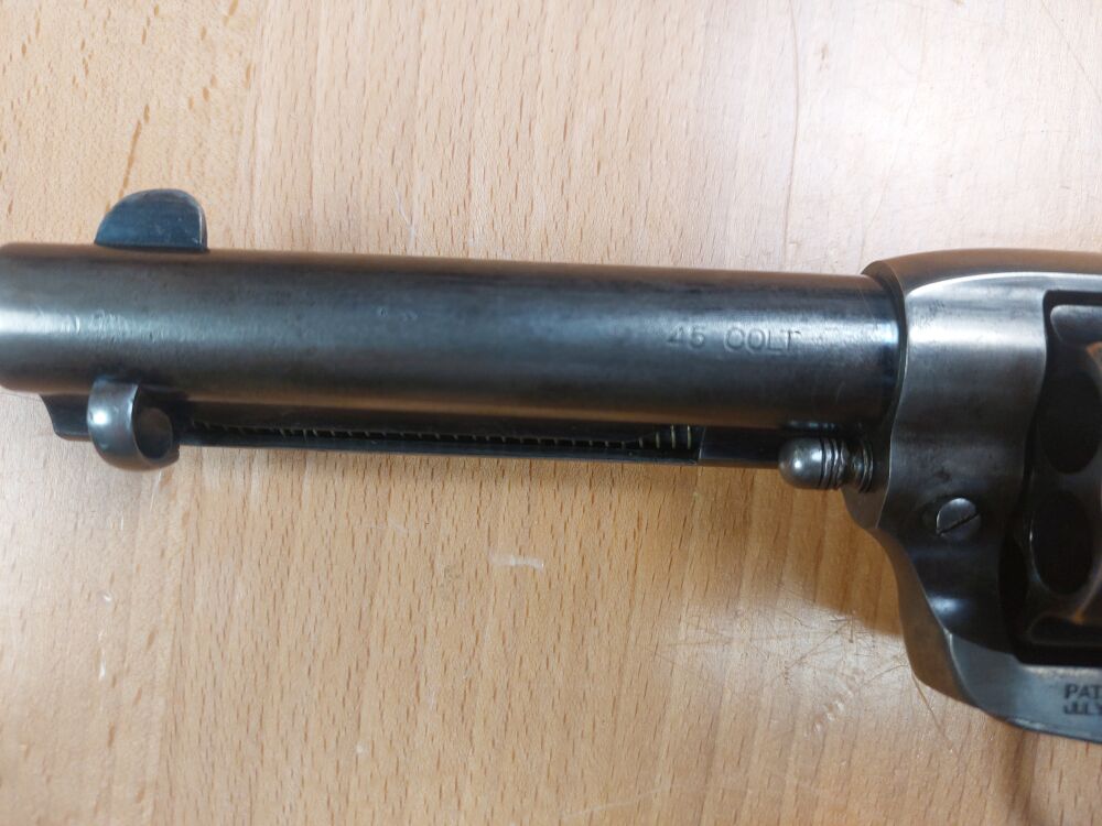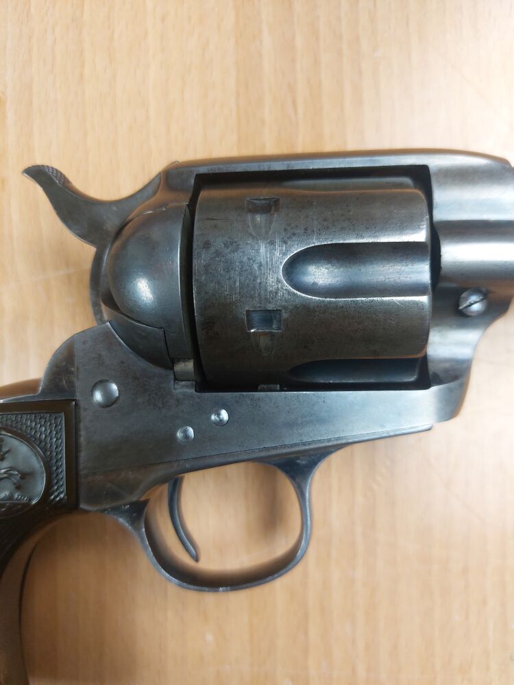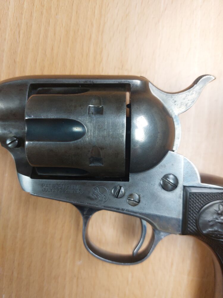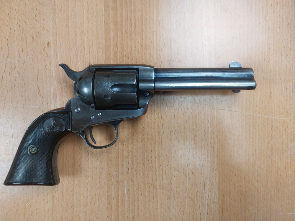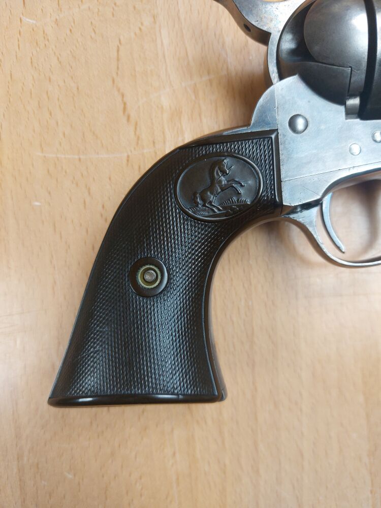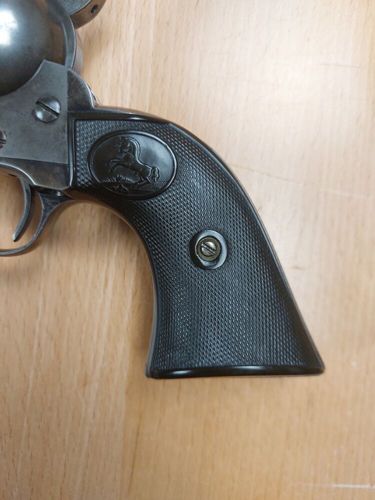Revolver  Colt, USA  Modell " SAA 1873 " Kaliber .45 Colt 1. Generation  Baujahr 1906 Lauflänge   4 3/4 Zoll Original Zustand mit authentischen Gebrauchsspuren  ...weiterlesen
