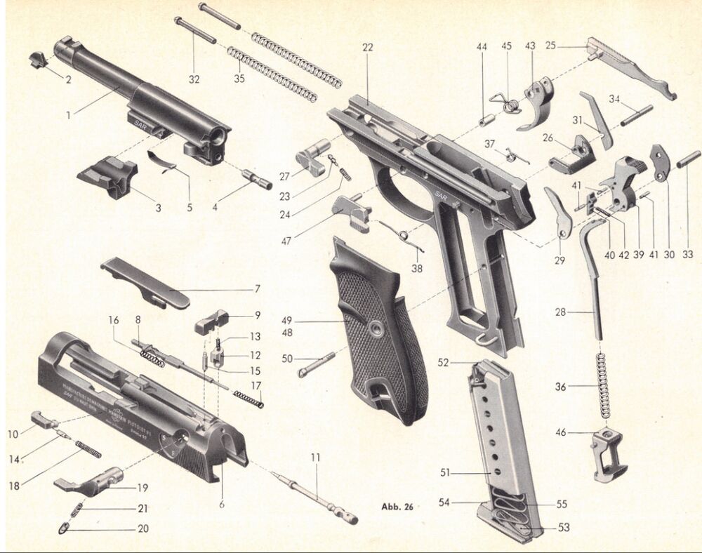 Freier Teilesatz Walther P1 der Bundeswehr 24 Teile - 9x19mm