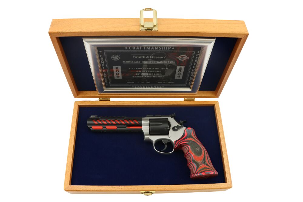 Die Smith & Wesson 686 Demon Limited Edition ist eine wahre Meisterleistung der Waffenherstellung, die nur in einer streng limitierten Auflage von 150 Stück weltweit erhältlich ist. Diese exklusive 15th Anniversary Edition vereint herausragende Handwerkskunst mit einzigartigem Design und bietet Sammlern und Schützen eine beispiellose Kombination aus Ästhetik und Funktionalität. Diese Waffe ist die perfekte Wahl für Sammler und Schützen, die keine Kompromisse eingehen wollen.