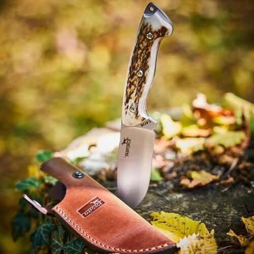 Der Griff des Parforce Jagdmessers besteht aus robustem Hirschhorn.