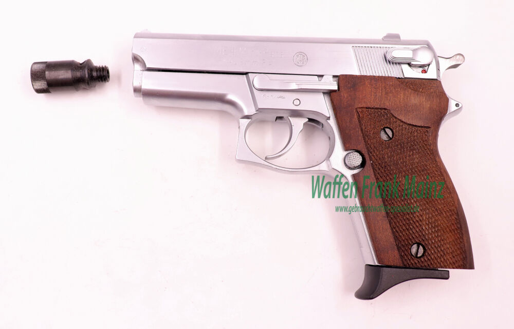 ungeschossen, aus Sammlungsauflösung, mit Holzgriffschalen, perfekter Nachbau der S&W Behördenpistole M659, mit herausnehmbarem 7 Schuss Stahlmagazin, in Original Karton mit Zubehör, wie bebildert, noch frei ab 18 Jahren....werkstattgeprüft mit voller Funktion, Verkauf erfolgt als Sammlerwaffe ohne Garantie&Gewährleistung