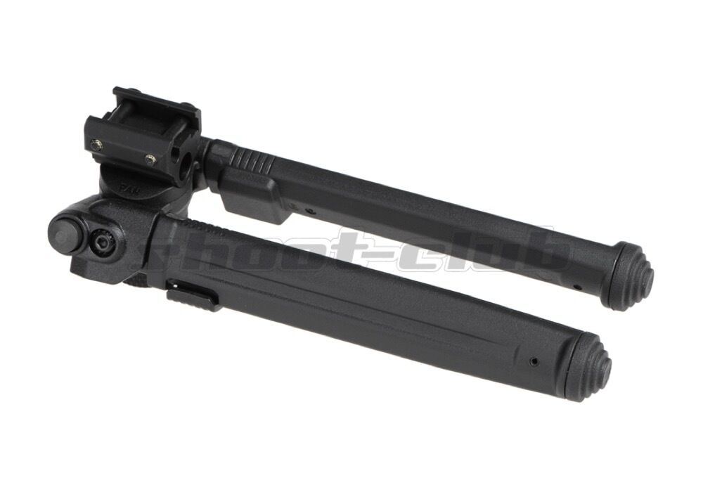Dieses hochwertige Zweibein von Magpul hat eine 22mm Picatinny Aufnahme und wird wie so oft üblich mit zwei kleinen Schrauben an der Schiene arretiert. Der Bipod ist per Push Button 7-stufig in der Höhe einstellbar. Die gummierten Kappen an dein Beinen sorgen auf glatten, rauen oder unebenen Untergründen für sicheren Halt und festen Stand. Die Kombination aus hartanodisiertem Mil-Spec 6061 T-6 Aluminium und Polymer macht das Zweibein zu einem zuverlässigen und langlebigen Partner, der sich übrigens im zusammengeklappten Zustand auch prima als Vorwärtsauflage verwenden lässt.
