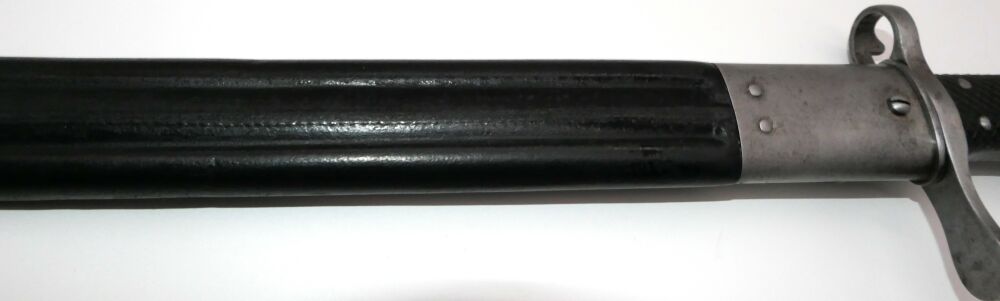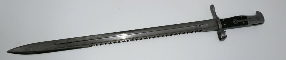 Sägebajonett für Schweizer Repetierbüchse Vetterli Mod1878 Erscheinungsjahr: ab 1878 Seriennummer: 17931 Zustand: gut, Lederscheide leicht abgewetzt Lief... ...weiterlesen