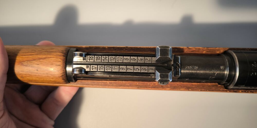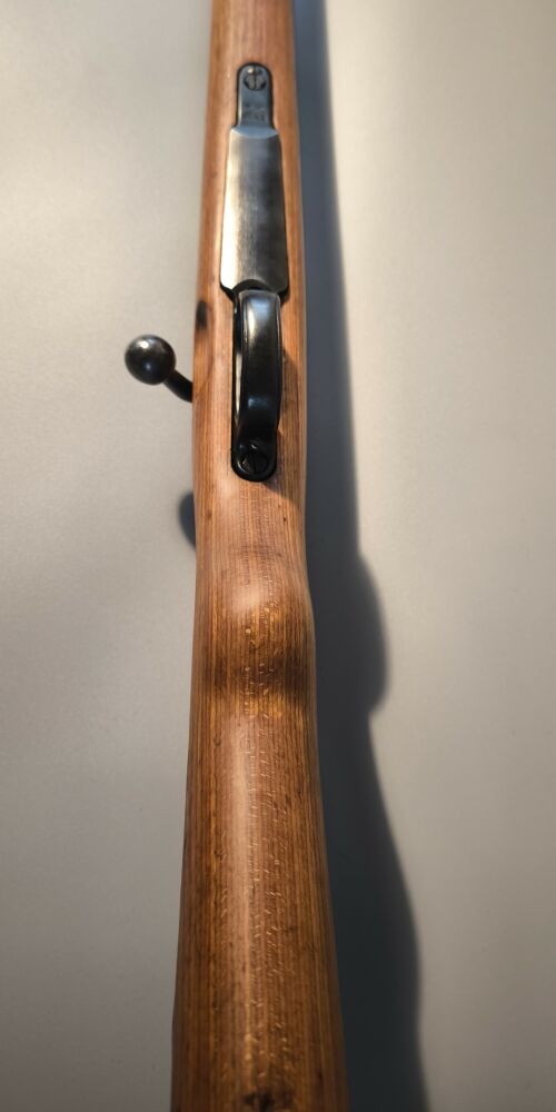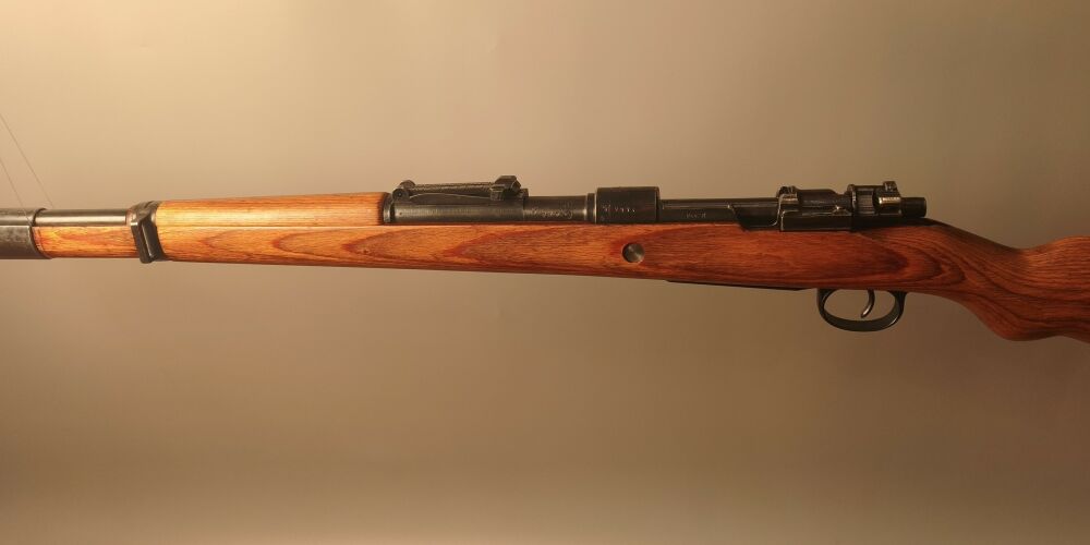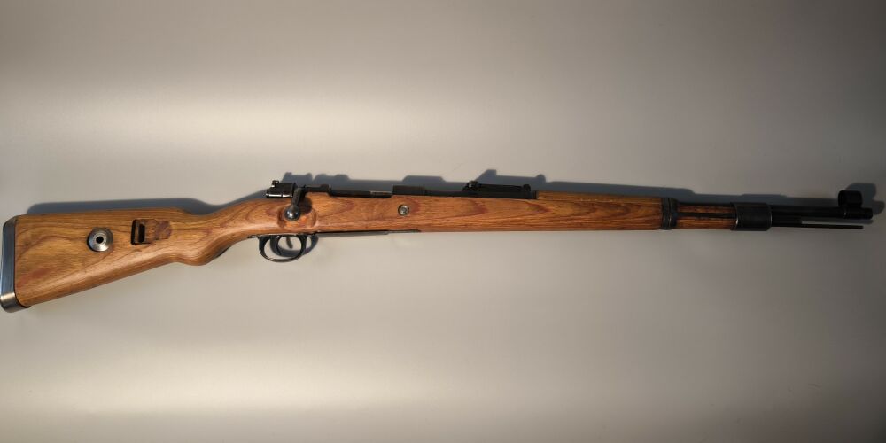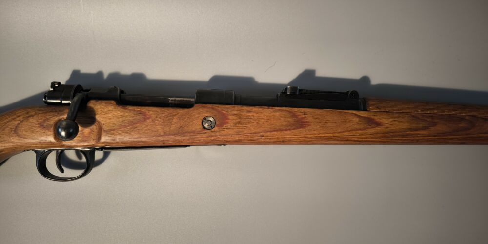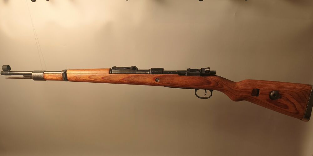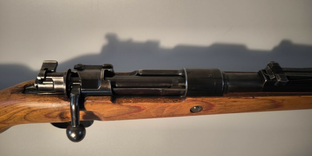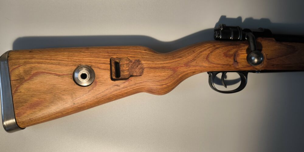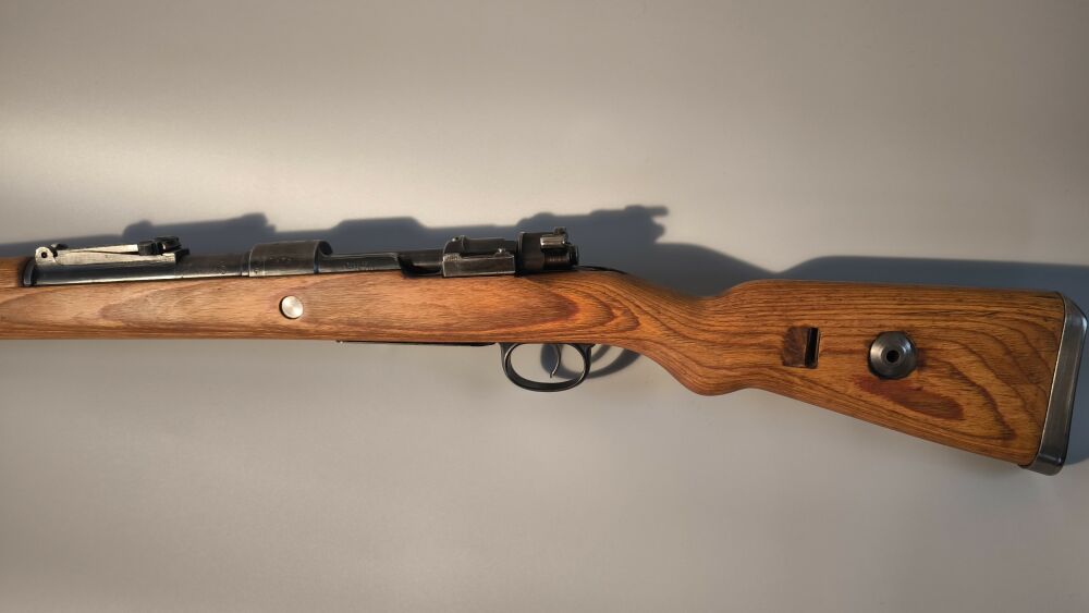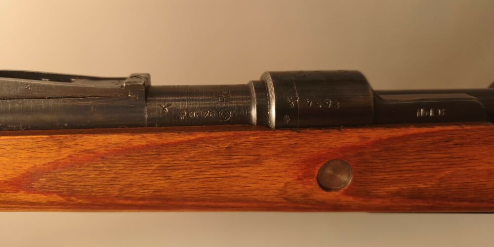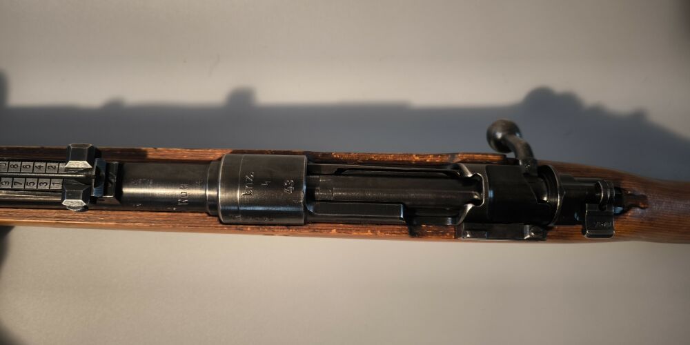 Wehrmachtskarabiner Hersteller BNZ. (Steyr-Daimler-Puch). Im Originalkaliber 8x57IS. Hülse mit Rune gestempelt. Neubeschuss, Schichtholzschaft, hohe Schaftkappe. Guter Zustand. ...weiterlesen