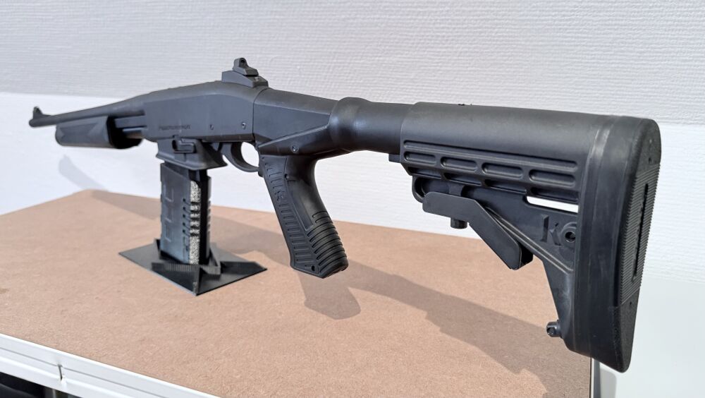 Inkl. Schubschaft im AR-Stil (Orignal-Schaft ist ebenfalls vorhanden) und einem Magazin (der Magazineinschub entspreicht dem AR15-Standard, es passen also alle AR-Magazine)