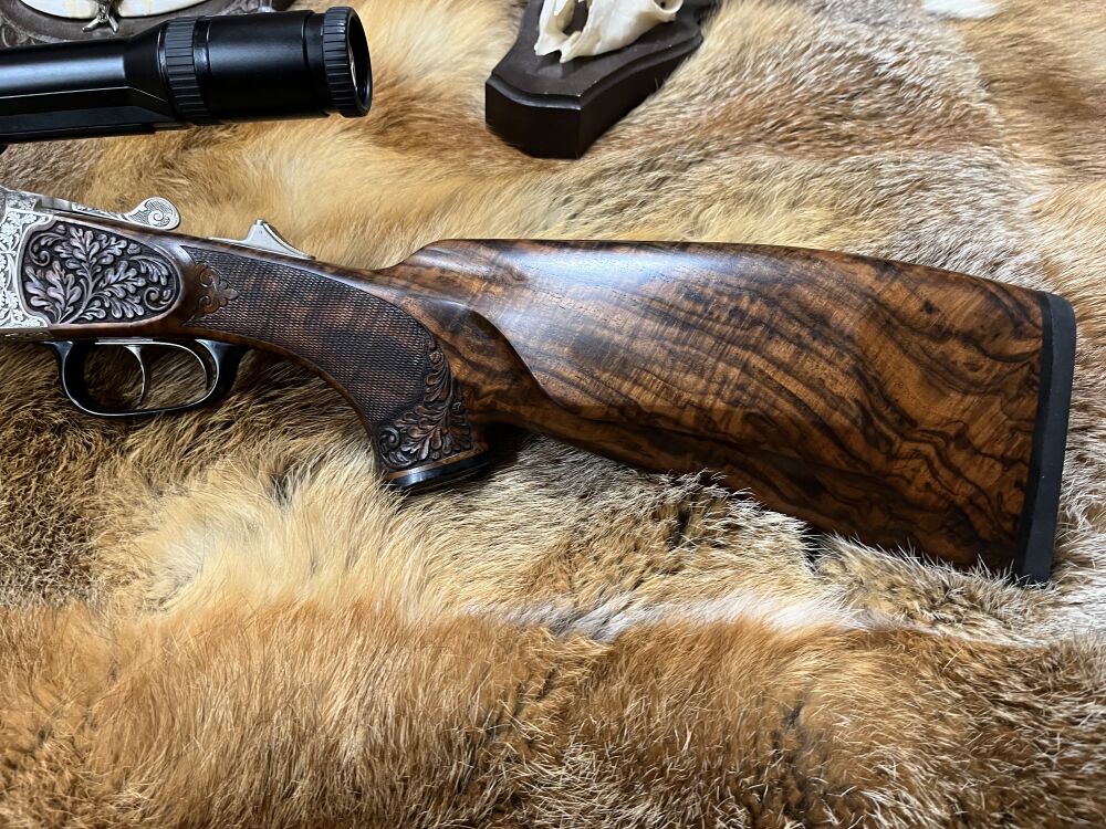 Die Basküle ist mit einer hohwertigen Handgravur ausgestattet . Auf der Linknseite ist ein