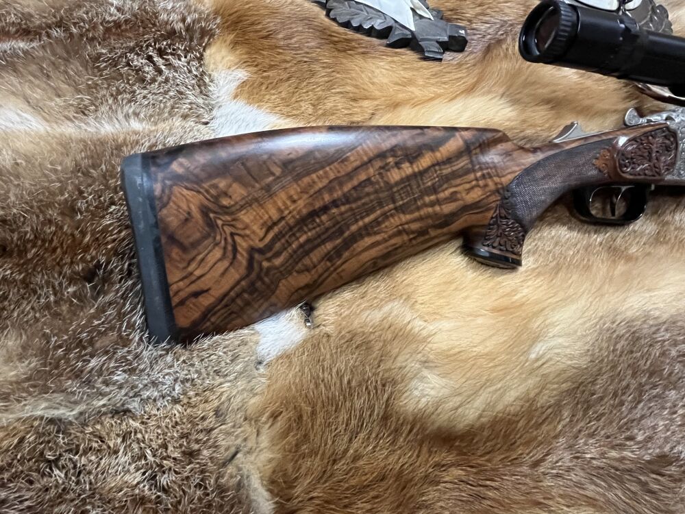 Blaser BD 880 Super Luxus Kaliber :30-06,22 Hornet , 16/70 Abzug:Flintenabzug (Feinabzug) Montage:Schwenkmontage Optik:Zeiss Diavari ZM 3-12X56 T* Absehen : 60 (Vier mit Leuchtpunkt ) Schaft : ... ...weiterlesen