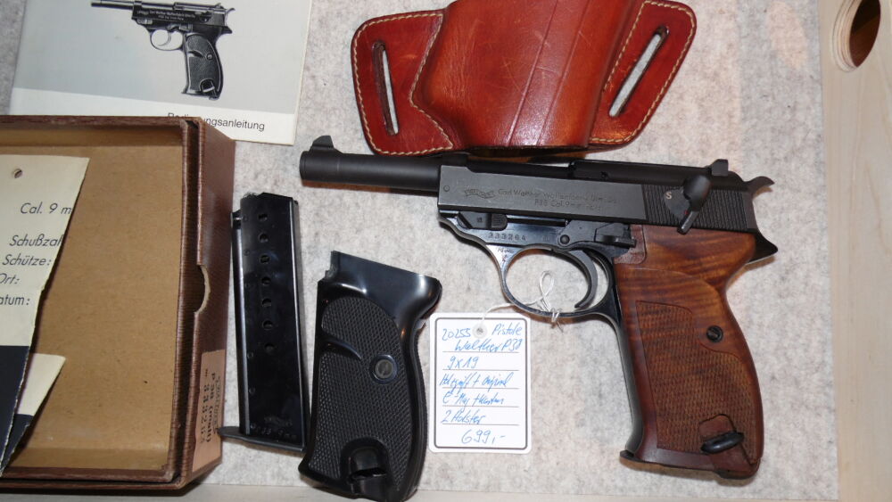 Walther P 3,8 Original, Wie Neu, incl. Karton - Bedienungsanleitung- Original Schußbild- E-Mag und Holster, Punzierte Holzgriffschalen und die Originale sind auch dabei. Sicherheitshinweis: Carl Walther GmbH UIm Im Lehrer Feld 1 89081 Ulm Tel: 0731 / 15 39 0 info@carl-walther.de www.carl-walther.de