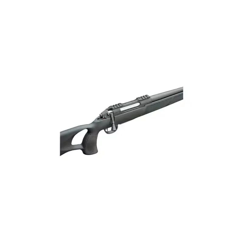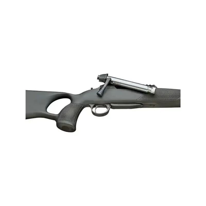 Repetierbüchse Rover Thumbole G2. Die Büchse kommt mit stabilem und robustem Polymerschaft mit angenehm dämpfender Gummischaftkappe. Der Hinterschaft mit verstellbarem und austauschbarem Schaftrücken fördert einen guten, sicheren Anschlag. Mit einer Gesamtlänge von 106 cm und einem 45 cm Lauf eine führige Büchse, auch in engen Kanzeln oder zur Bewegungsjagd geeignet. Der kaltgehämmerte 18 mm - Lauf ist mit einem Mündungsgewinde (M15x1) ausgestattet und somit vorbereitet für den Anbau eines Schalldämpfers. Auf dem Systemkasten ist eine Picatinnyschiene verbaut um einen wiederholgenauen Optikwechsel durchführen zu können. Der Verschluss ist mit 3 Verriegelungswarzen ausgestattet und hat einen Öffnungswinkel von nur 60°, somit kann auch im Liegen ohne Probleme repetiert werden. Die Büchse hat eine Magazinkapazität von 3 Schuss.