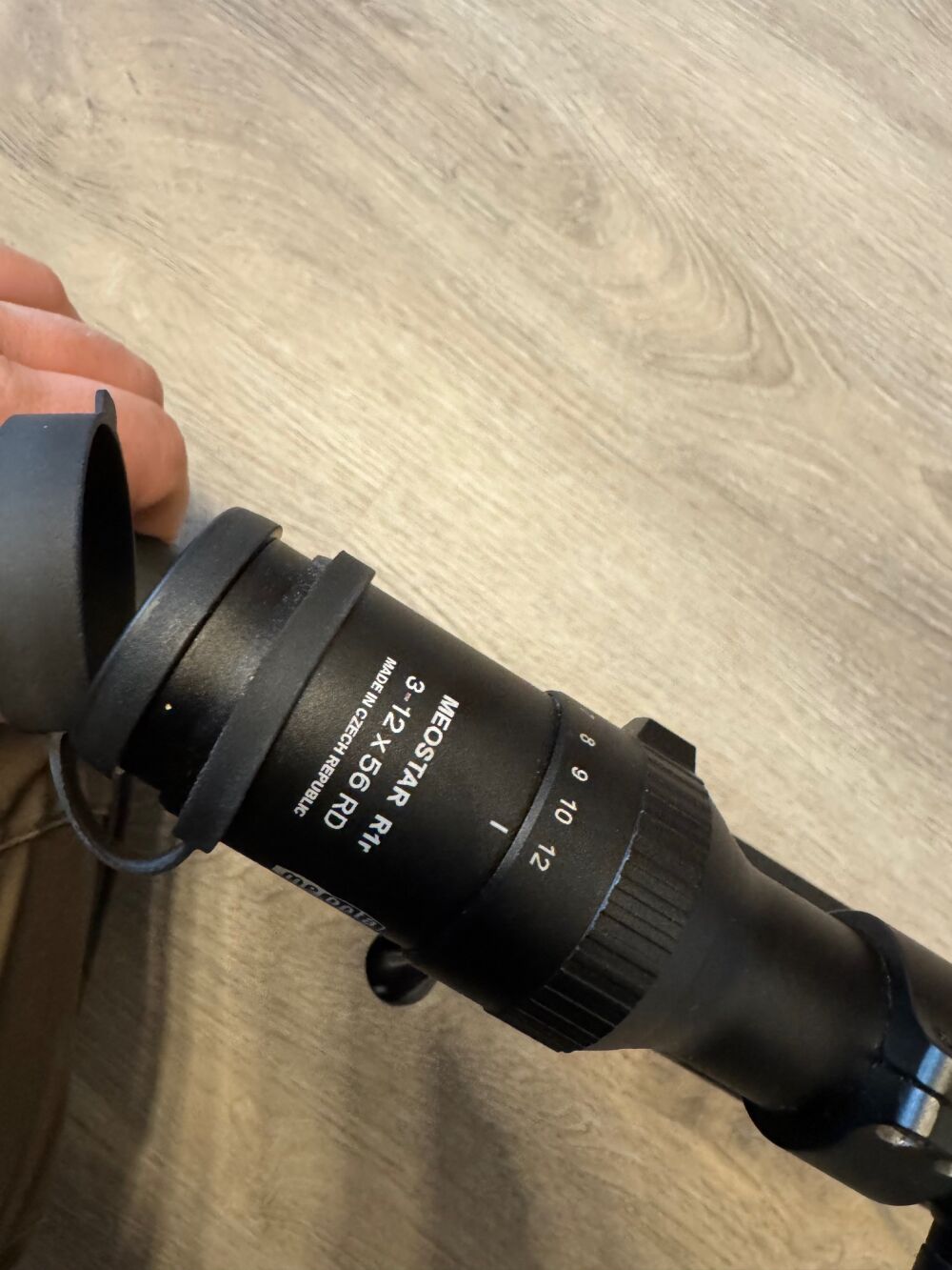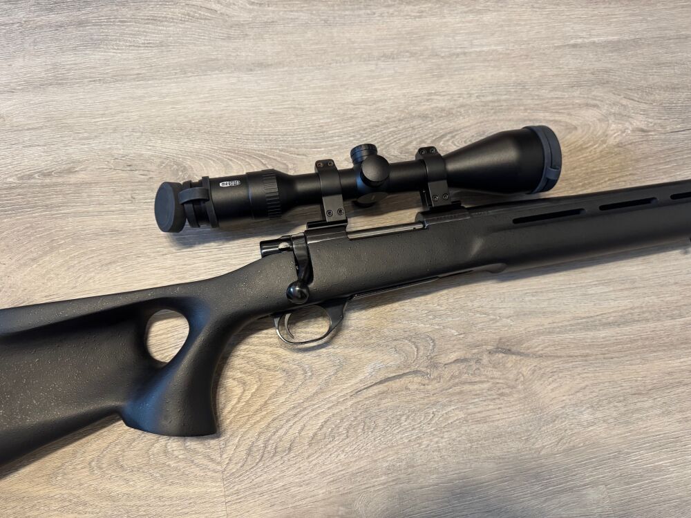 Die Waffe ist mit einem modernen Meopta Meostar 3-12x56 Zielfernrohr mit Leuchtabsehen 4C ausgetattet.