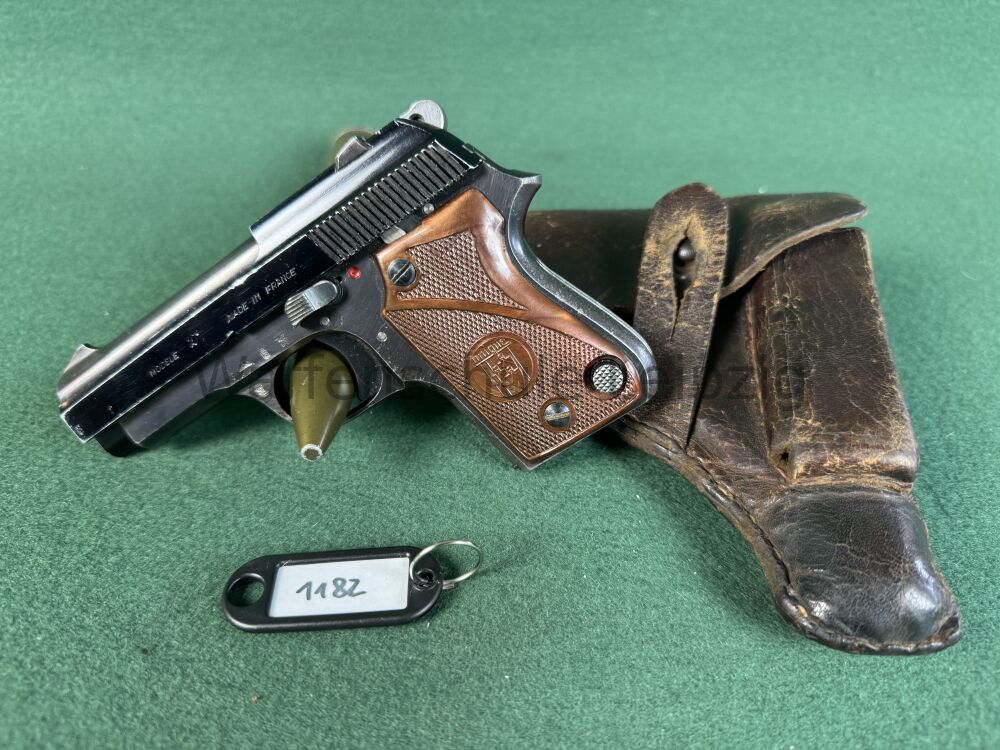 Repetierpistole Kal. 6 mm Flobert, mit Ledertasche, mittlere Gebrauchsspuren