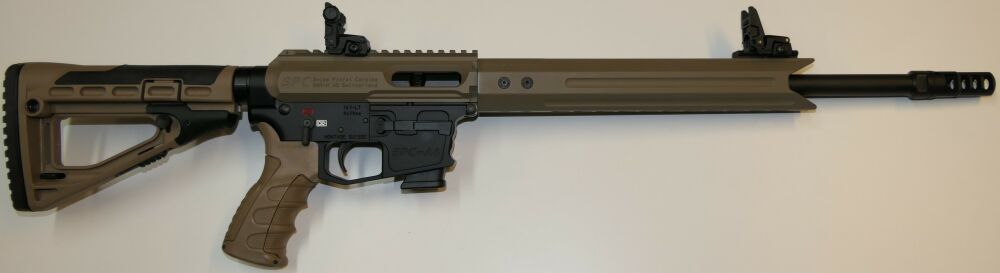 - NEUHEIT - Neuwaffe Wir verkaufen Selbstladebüchse GWMH SPC-SPORTER A4 (SWISS PISTOL CARBINE) FDE (Flat Dark Earth) mit Kompensator RECLESS SPC 17" im Kaliber 9x19 und Teleskopschulterstütze.