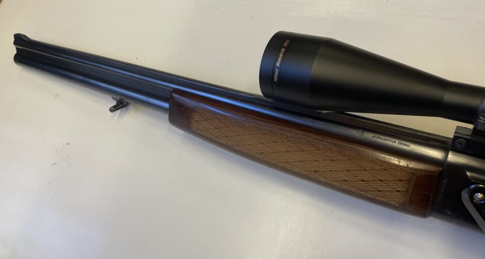 Bockbüchsflinte  Brünner ZH Kal. 5,6x50 R magn. ; 12/70 Zielfernrohr Nikkon Monarch 3,5-10x50 / Leuchtabsehen Festmontage Schaftlänge: 36,5 cm Zustand: gut, mit Gerbauchsspuren   ... ...weiterlesen