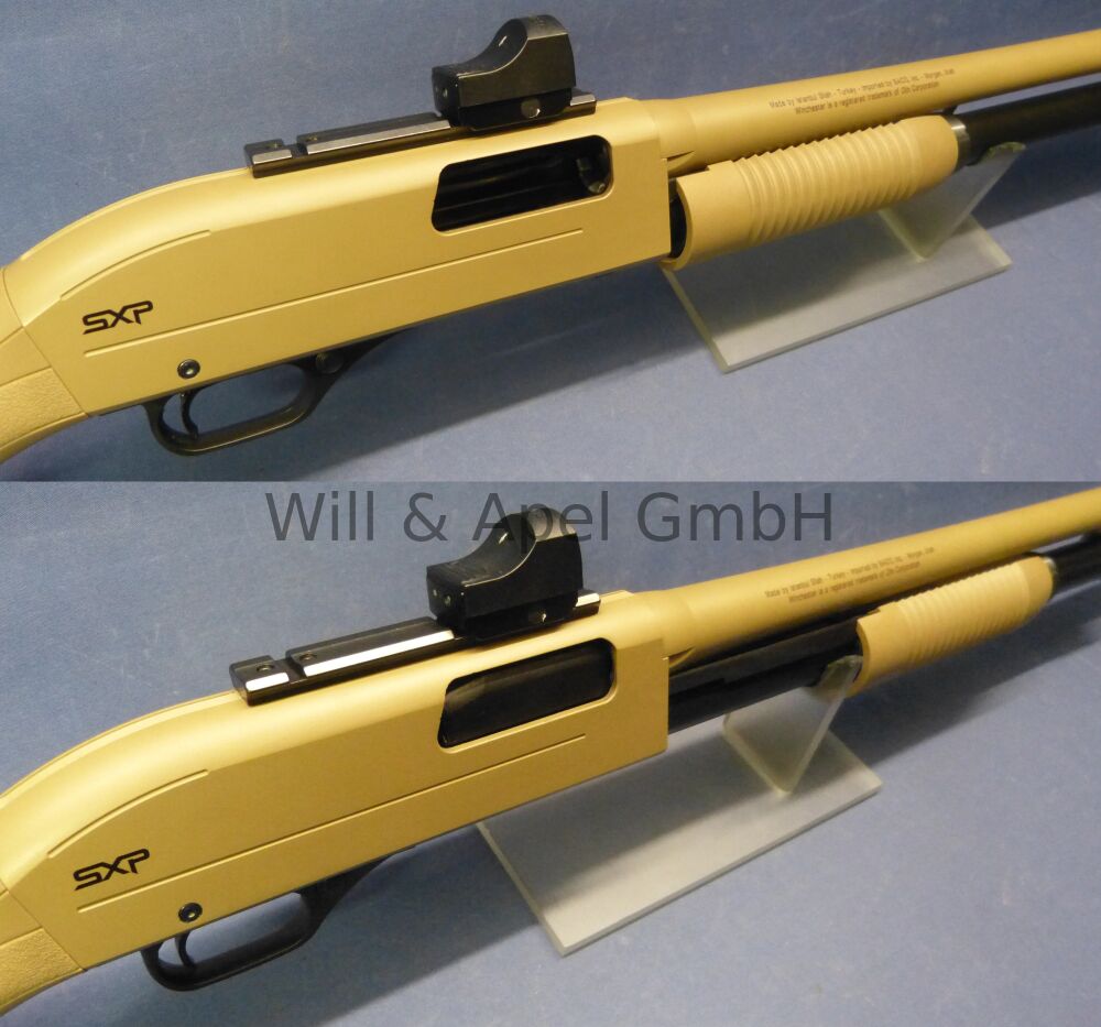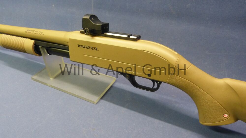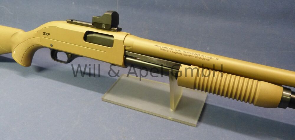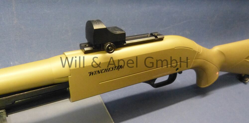 REPETIERFLINTE Winchester Kaliber 12/76 Modell SXP Lauflänge 47cm Stahlschrotbeschuss Docter Sight Rotpunkt auf Weaverschiene, Henneberger Montage (Breite wie Picatinny) wechselbare... ...weiterlesen