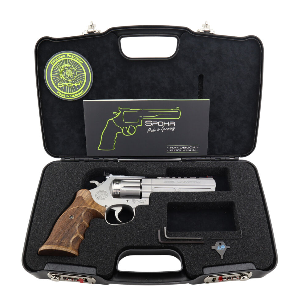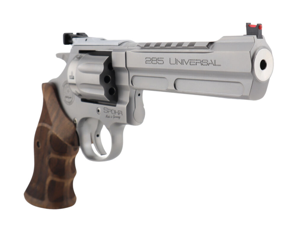 Mit dem 285 Universal setzt der deutsche Waffenhersteller Spohr einen neuen Standard im Bereich der universellen Sportrevolver. Vielseitige Einsetzbarkeit in diversen Schießsportdisziplinen, absolute Präzision, kristallklare Abzugscharakteristik und höchste deutsche Qualität zu einem vernünftigen Preis standen bei der Entwicklung dieser Waffe im Vordergrund.
