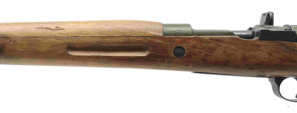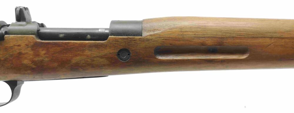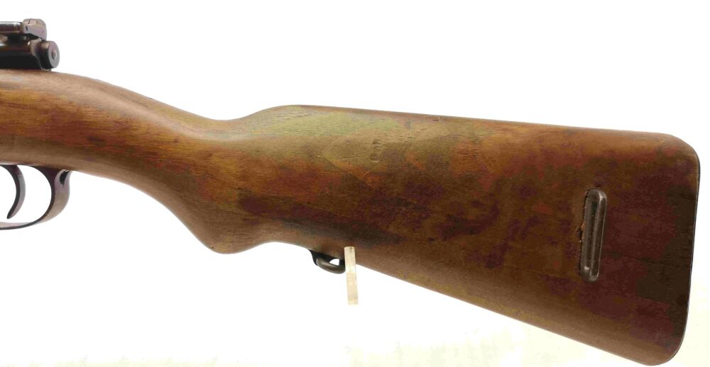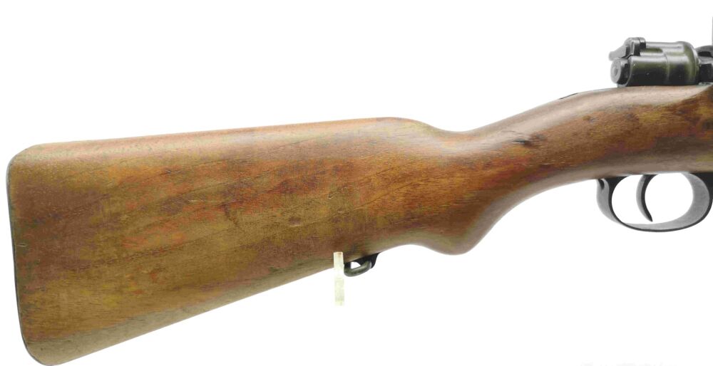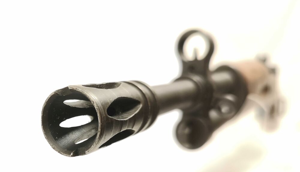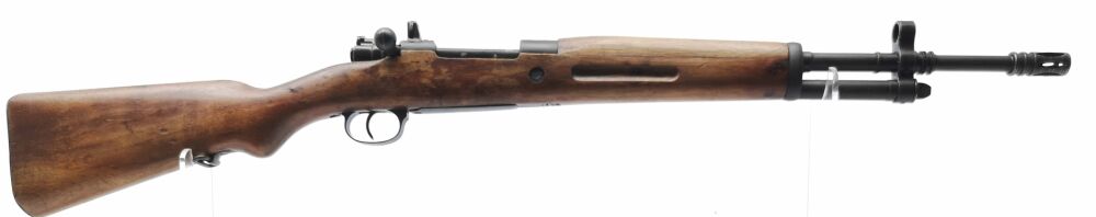 Besonderheit: führige spanische Ordonnanzwaffe aus 1948, beliebt auch für die Nachsuche, Fabrica de Armas FR8, Kal. 308Win., mit Mündungsfeuerbremse, 98er ähnlichem System mit Flügelsicherung, innenliegendes Magazin, Lauf und Verschluss nummerngleich, Drehkimme und Stiftkorn m. Korntunnel, Metallschaftkappe und Riemenbügelösen, Mehrlader, Lauf blank mit scharfen Feldern & Zügen