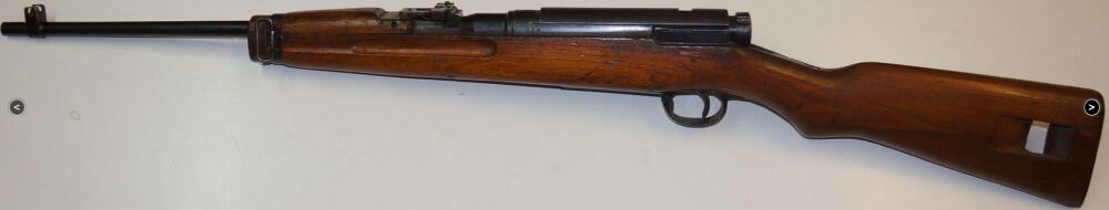 Bei dem vorliegenden Gewehr handelt es sich ein Stück, dass nach dem zweiten Weltkrieg in den Besitz von Thailand überging und dort optisch an das M1 Carbine angepasst wurde. Gewehre die in dieser Art modifiziert wurden, kamen unter anderem bei der thailändischen Polizei zum Einsatz. Das Gewehr befindet sich in gutem Zustand. Die Waffe ist nicht nummergleich verfügt aber über einen gültigen Beschuss. Der Staubschutzdeckel ist vorhanden.