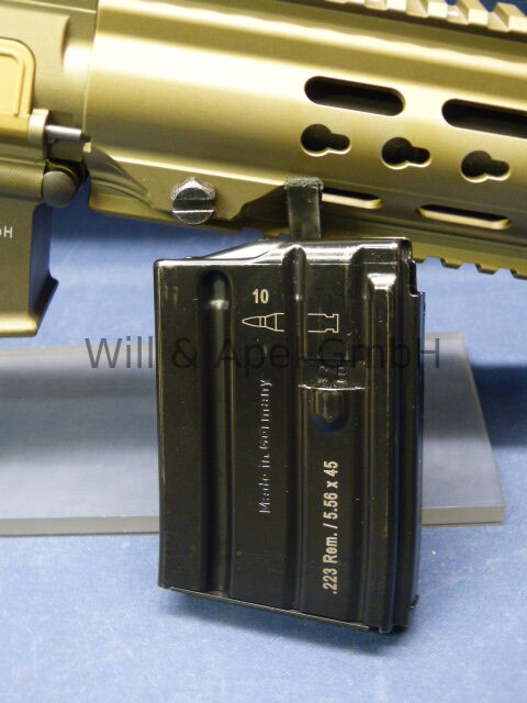 HECKLER & KOCH SELBSTLADEBÜCHSE MR223 Modell MR223 Kaliber 223REM 14,5Zoll Farbe RAL 8000 Metallmagazin Original Behälter ...weiterlesen